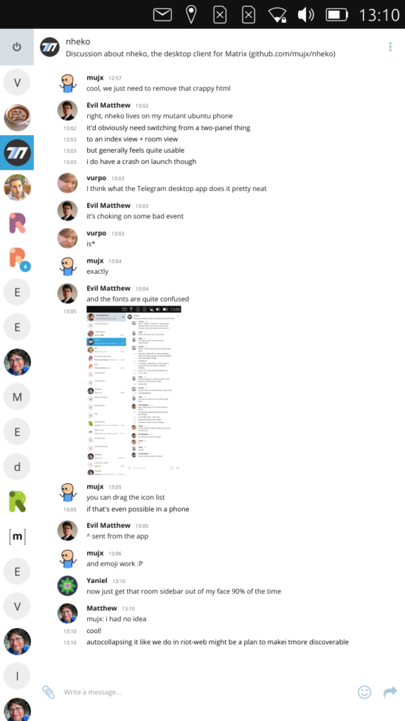 # you can grab it from the matthew/mobile branch of github.com/matrix-org/nheko